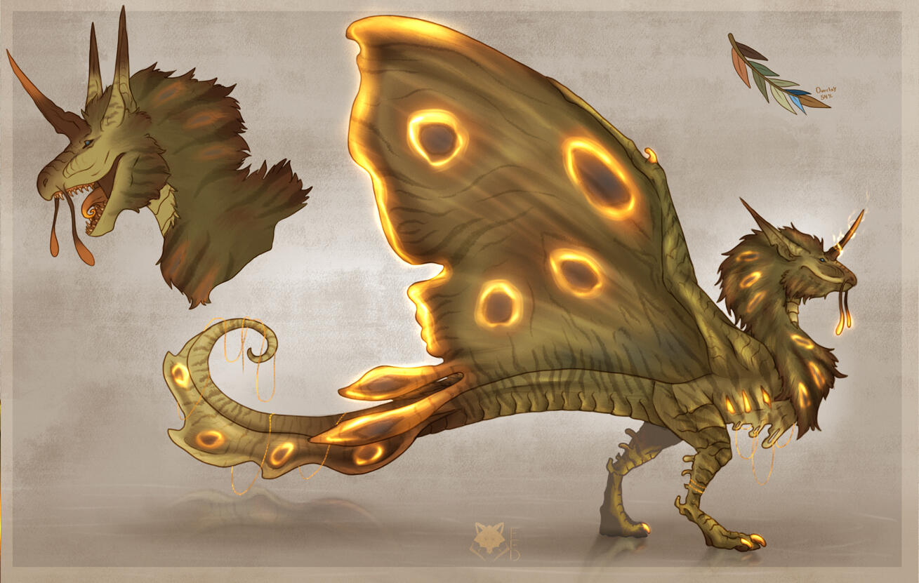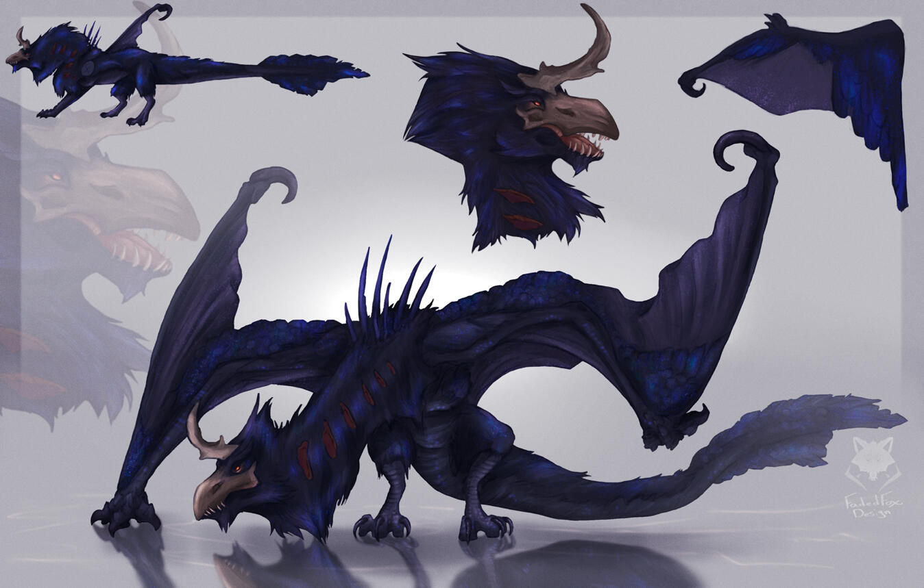 Full Reference Sheet - $250 - $300 [ includes 1 side profile fullbody, 1 fullbody, 1 profile headshot, choice of an eye shot or hand shot, choice of wing shot or pelt shot ]